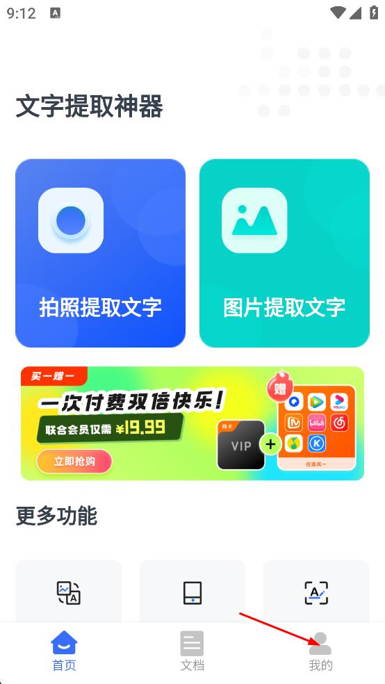 1、打開文字提取神器,點(diǎn)擊首頁右下角我的。