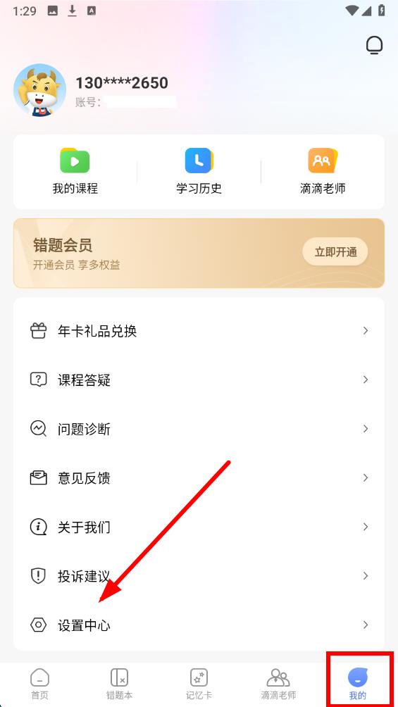 1、進入主界面后點擊底部最右側(cè)的我的選項進入個人中心頁面,找到設(shè)置中心選項并點擊進入。