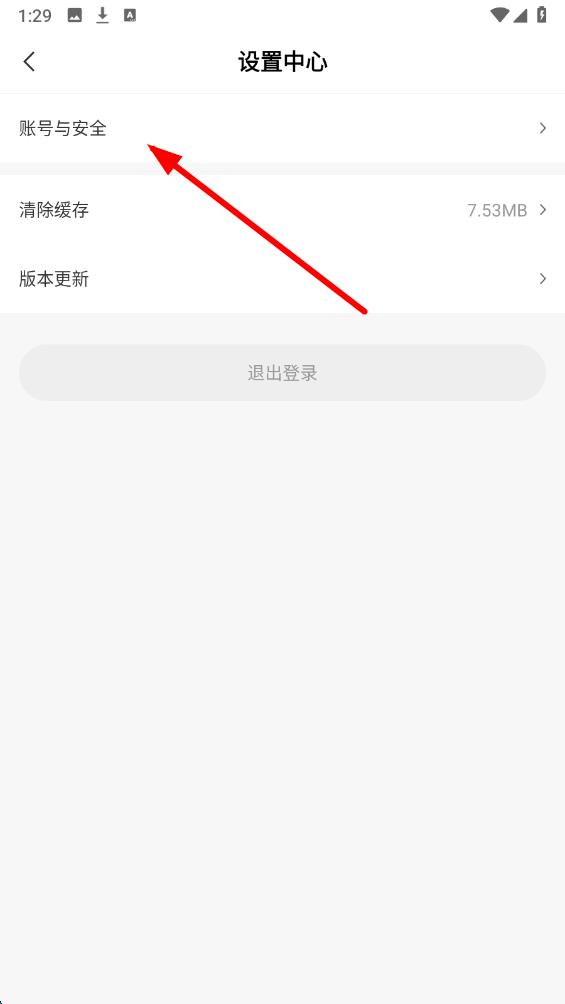 2、在設(shè)置中心頁面,點擊賬號與安全選項,進入賬號安全設(shè)置頁。
