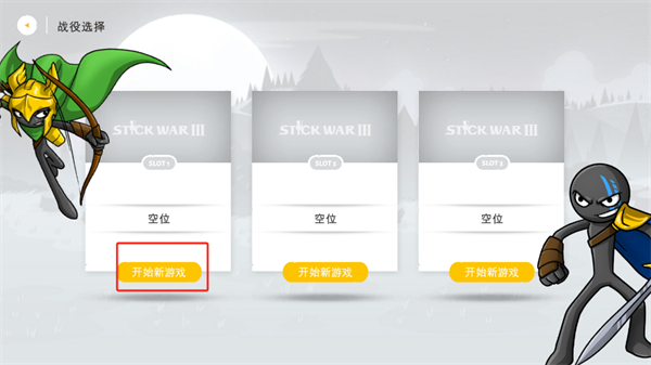 3、屏幕之中會(huì)顯示三個(gè)不同的空位,玩家可以按照自己的喜好來進(jìn)行選擇,點(diǎn)擊對(duì)應(yīng)空位下的“開始新游戲”按鈕即可占位;