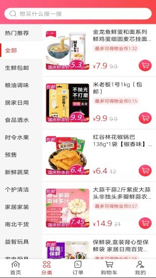 物業(yè)拼拼app是非常全面的一款手機購物類型的軟件,在這里用戶們能夠找到囊括了生活中方方面面的商品進行購買,生鮮、糧油調味、居家日用、食品酒水、個護清潔、家居家裝、南北干貨、益智玩具、數(shù)碼家電等等等等應有盡有,讓用戶們能夠在這里享受到一站式購物的方便快捷。