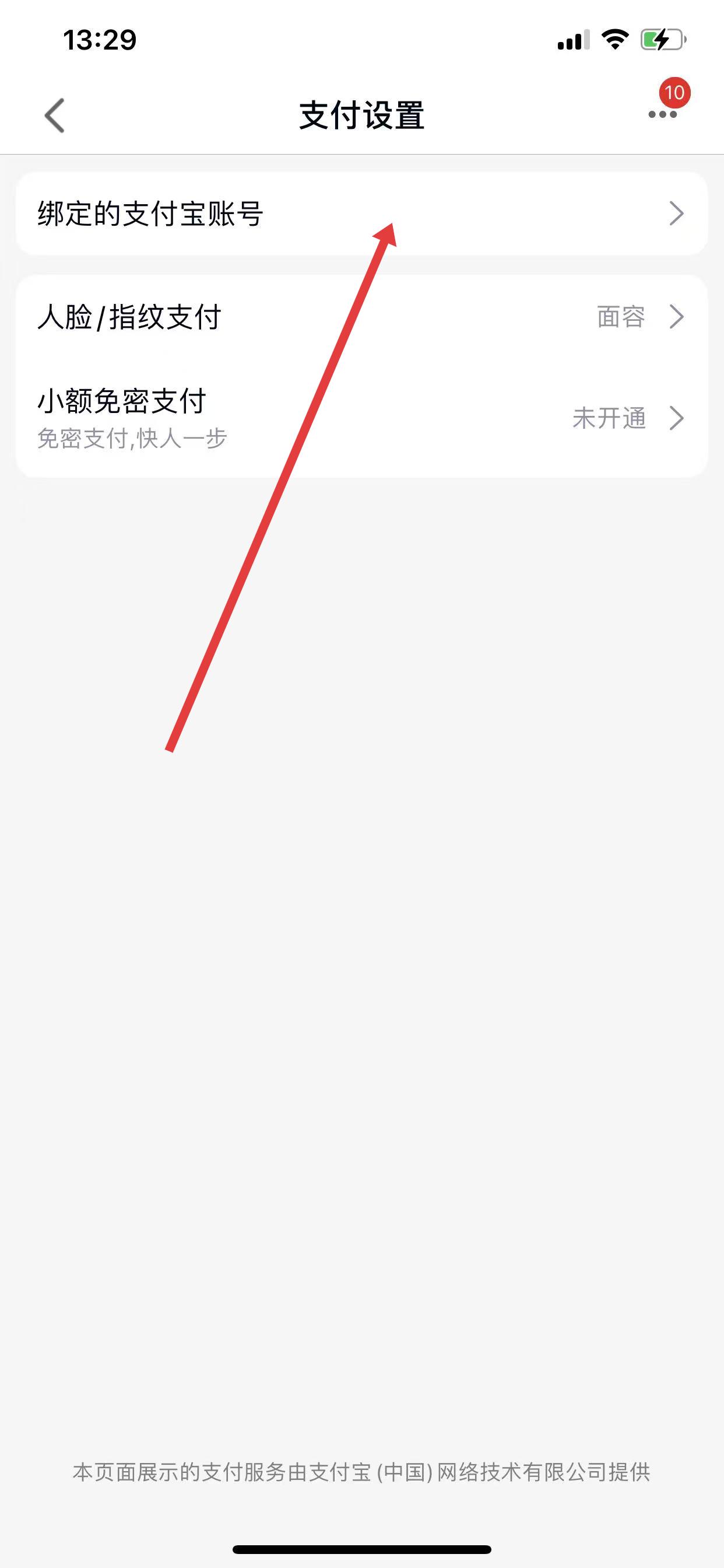 3、在支付設置頁面里,點擊綁定的支付寶賬號選項,進行支付寶賬號的綁定操作。