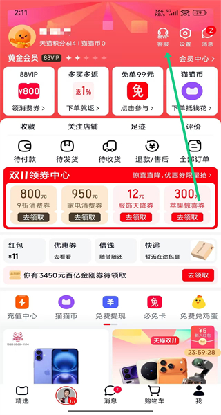 貓貓幣時光機:可疊加雙11紅包消費券使用
