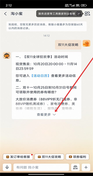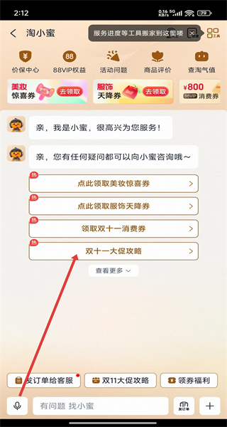 3、淘小蜜客服界面點擊“雙十一大促攻略”,查看攻略詳情。