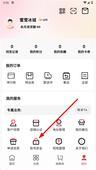 2、在我的頁面中,找到賬號安全選項并點擊進入。