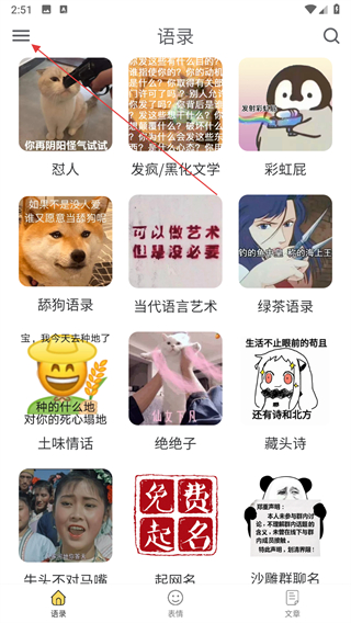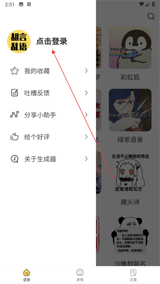 1、打開胡言亂語生成器應(yīng)用,點擊表情選項,進入表情頁面。