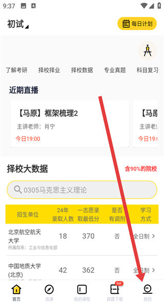 1、打開該考研教育類APP,點(diǎn)擊右下角的我的選項(xiàng),進(jìn)入個(gè)人中心界面。
