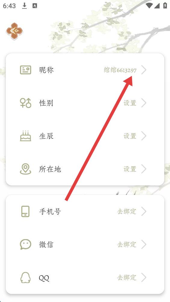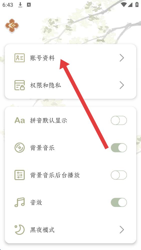 3、在設(shè)置頁面點擊賬號資料選項,進入編輯頁面。