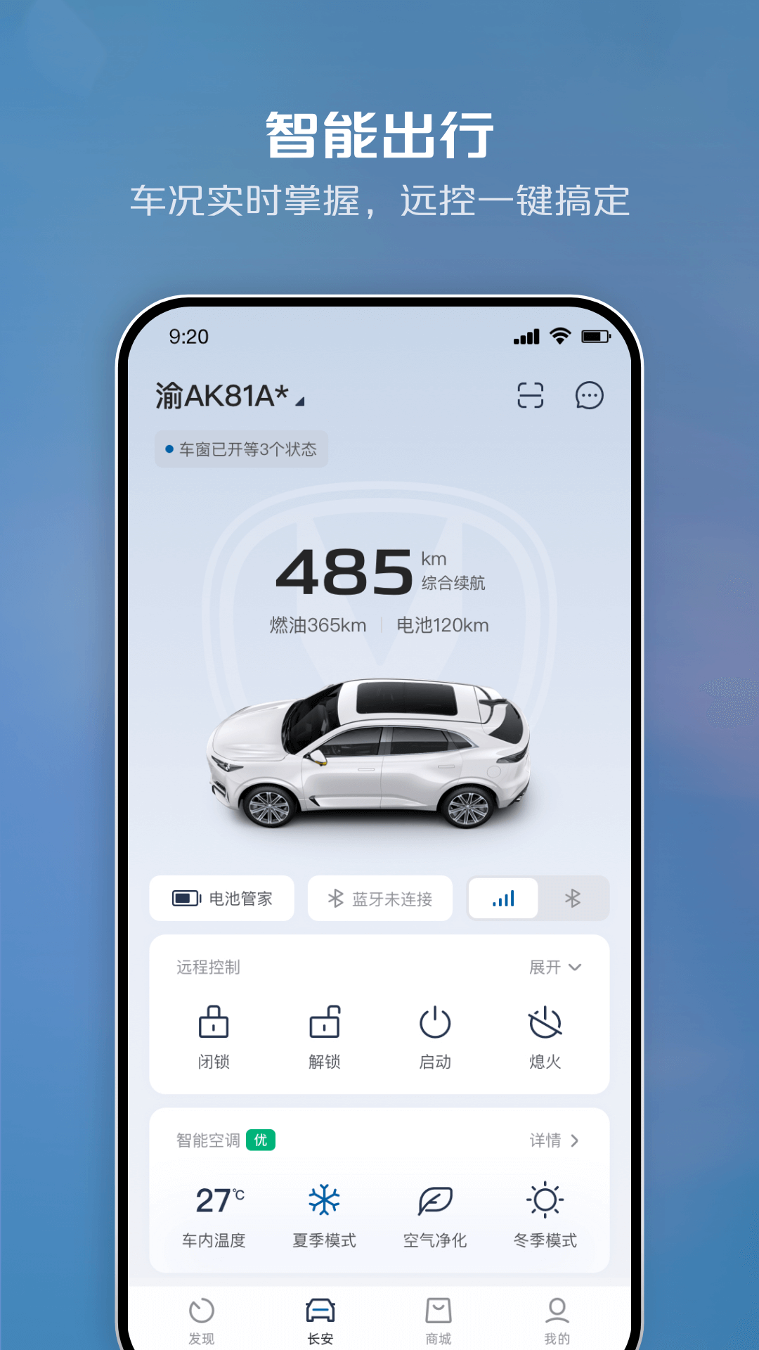 長安智慧云控EV是長安新能源汽車推出的汽車智能互聯(lián)手機(jī)應(yīng)用,車主可以通過手機(jī)隨時(shí)掌握愛車的車輛狀況、車輛電量、對車輛進(jìn)行遠(yuǎn)程控制、獲取車輛最新的服務(wù)信息。為車主提供智能化科技服務(wù)和個(gè)性化出行體驗(yàn),方便用戶更好的管理愛車。