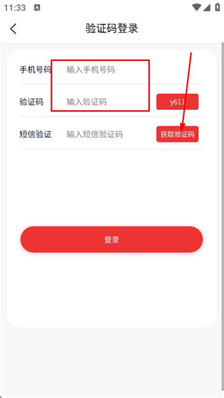 2、在驗證碼登錄頁面,輸入手機號碼和驗證碼并獲取驗證碼。