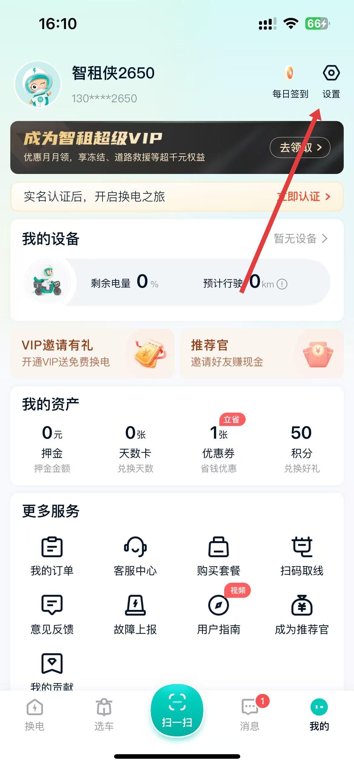 1、打開智租換電APP,點擊底部導航欄中的我的選項,進入個人相關界面。