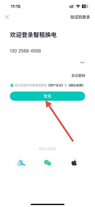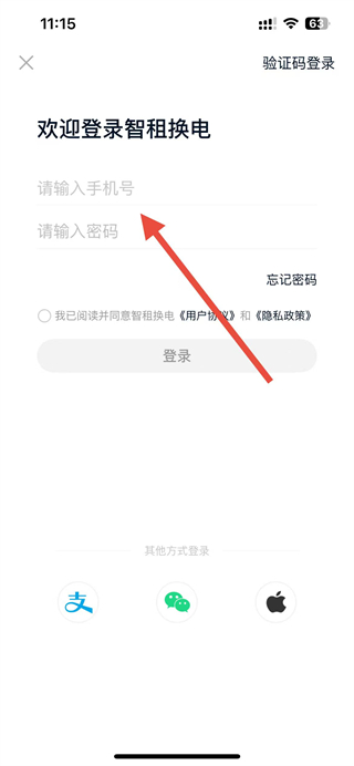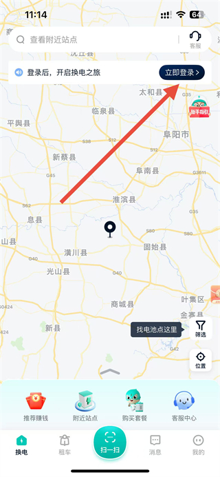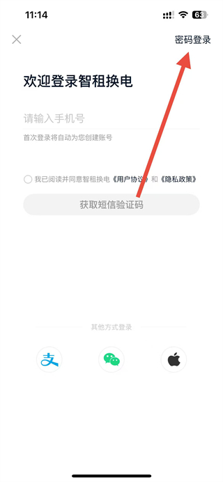 1、在智租換電app首頁點擊立即登錄按鈕,進入登錄頁面。