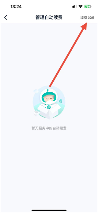 4、在管理自動續(xù)費頁面,點擊右上角續(xù)費記錄選項,即可查看續(xù)費記錄明細。