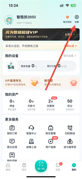 1、在智租換電柜前打開智租出行APP掃碼開柜