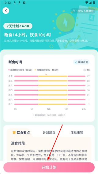 3、進入所選計劃詳情頁面后,點擊開始計劃,即可重新制定斷食計劃。