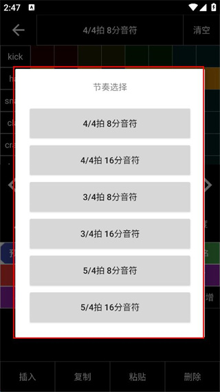 2、在節(jié)奏編輯頁(yè)面點(diǎn)擊4/4拍8分音符,選擇所需的節(jié)奏類(lèi)型。