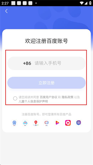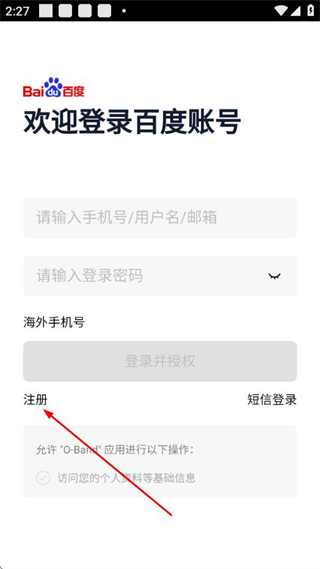 1、打開(kāi)O-Band APP,在初始頁(yè)面點(diǎn)“立即注冊(cè)選項(xiàng),進(jìn)入百度賬號(hào)注冊(cè)頁(yè)面。