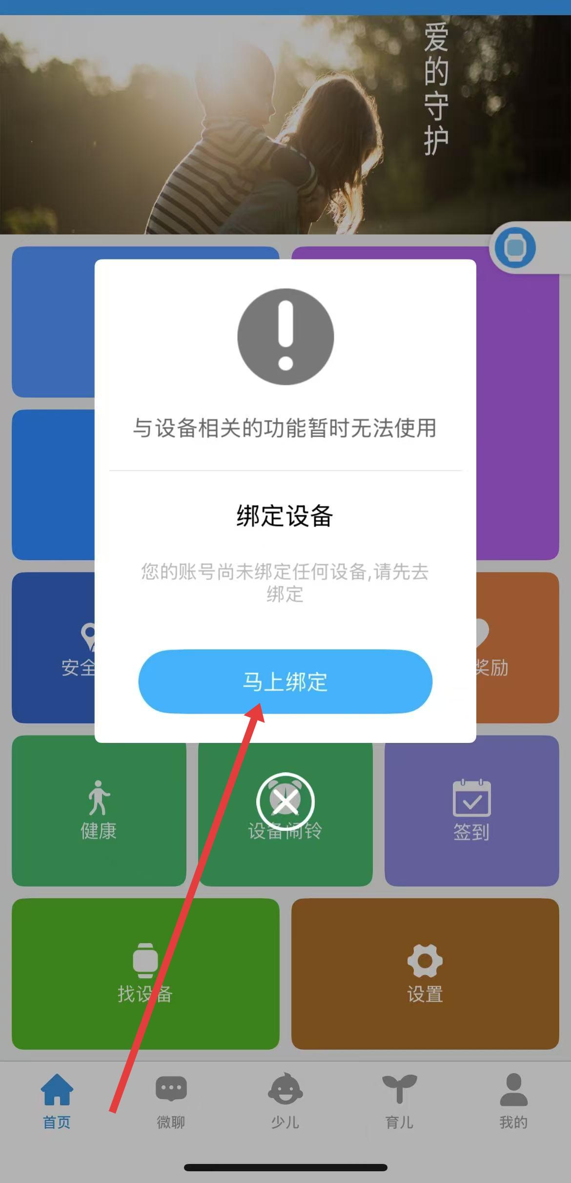 2、因賬號未綁定設備時,系統(tǒng)會彈出功能無法使用提示框,點擊藍色的馬上綁定按鈕,這是激活設備功能的必要操作。