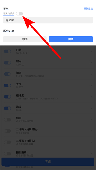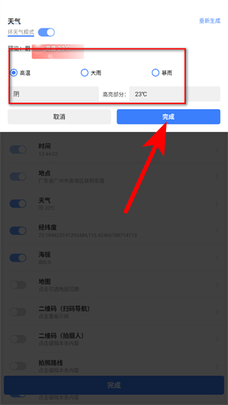 2、天氣水印,可以獲取當(dāng)?shù)禺?dāng)天的天氣預(yù)報(bào),添加天氣預(yù)報(bào)水印。