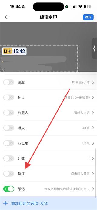 2、在編輯水印頁面,找到備注選項(xiàng)并點(diǎn)擊,彈出備注輸入窗口。