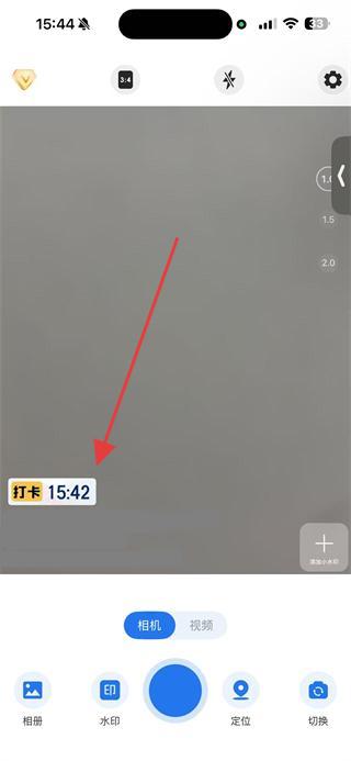 1、打開搞定水印相機(jī)APP,進(jìn)入拍攝界面后,點(diǎn)擊水印選項(xiàng),進(jìn)入編輯水印頁面。