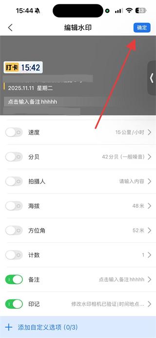 4、備注內(nèi)容設(shè)置完成后,點(diǎn)擊右上角的確定按鈕,即可在水印中顯示備注信息。
