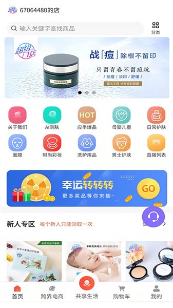 覆蓋全品類銷售,主要銷售喜澳化妝品自營護膚品牌。