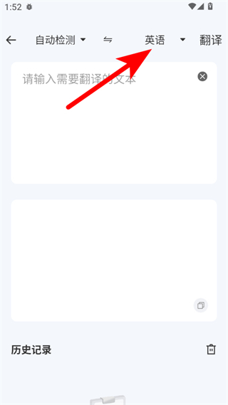 2、在翻譯界面,點擊英語或當前顯示的語言選項,彈出語言列表。
