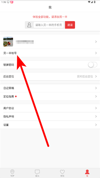 2、在個(gè)人頁(yè)面中,點(diǎn)擊另一半帳號(hào)選項(xiàng)。