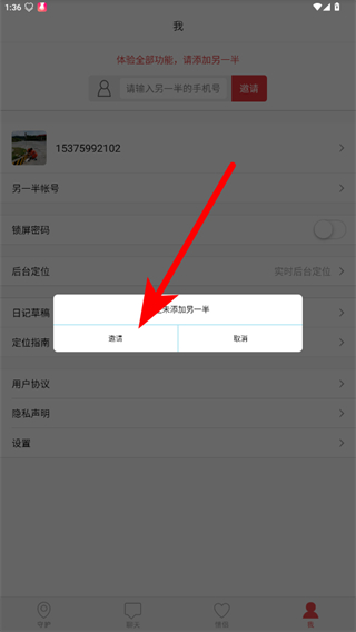 點(diǎn)擊另一伴頭像,定位TA的位置,實(shí)時(shí)傳送。
