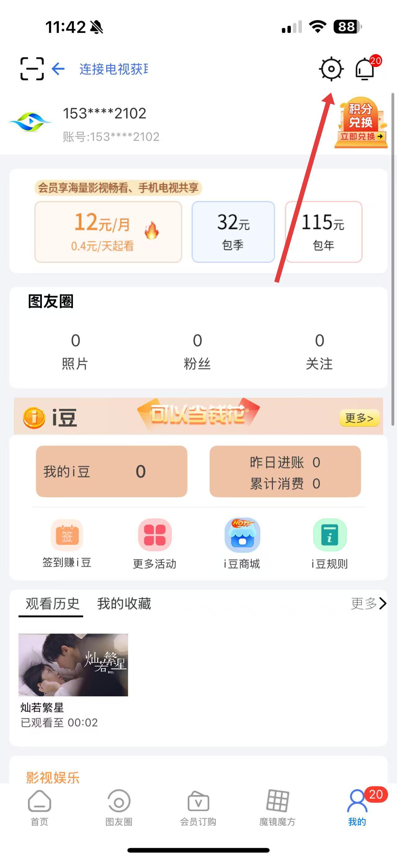 2、在個(gè)人頁(yè)面中,點(diǎn)擊右上角設(shè)置圖標(biāo)齒輪形狀,進(jìn)入設(shè)置界面。