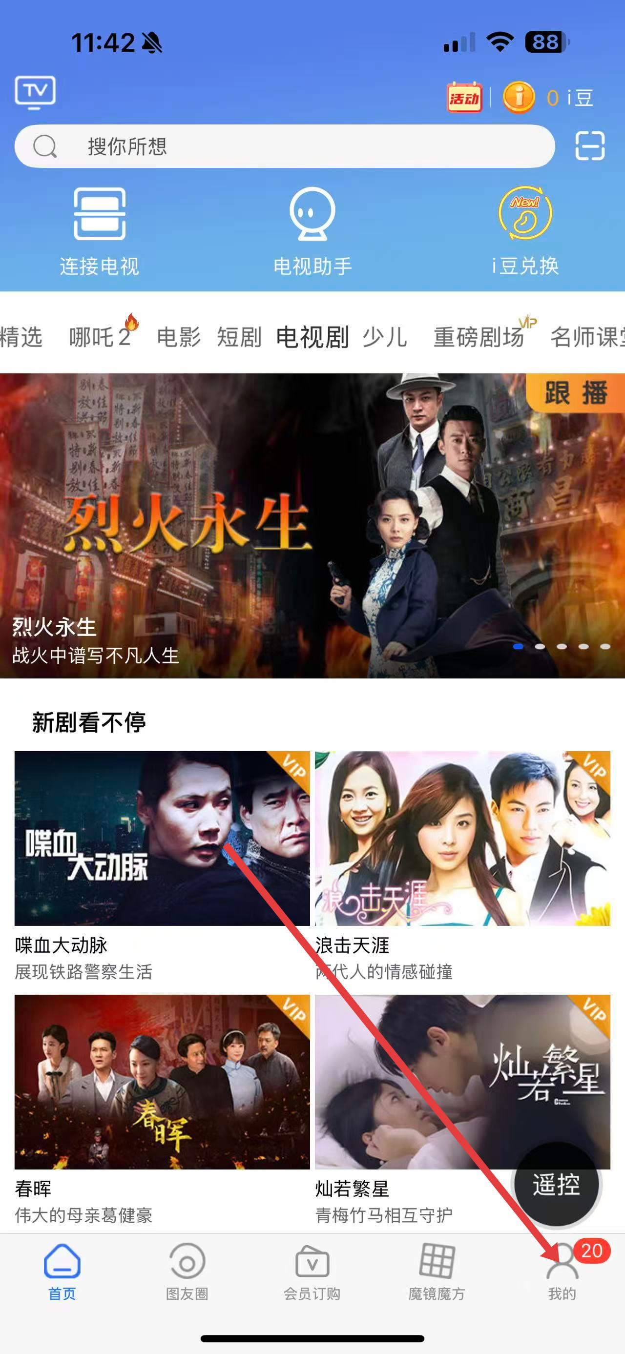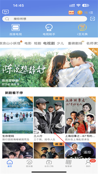 1、啟動(dòng)i視的應(yīng)用,進(jìn)入時(shí)點(diǎn)擊電視劇的標(biāo)簽。