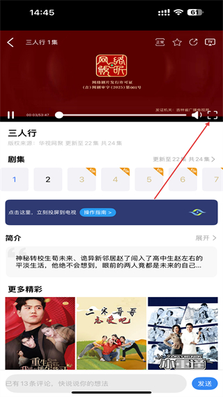 3、進(jìn)入播放的頁(yè)面內(nèi),點(diǎn)擊全屏按鈕能夠更好觀看。