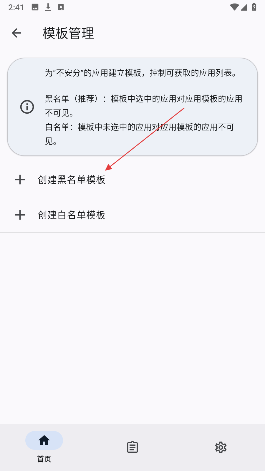 2、在模塊管理選擇創(chuàng)建黑名單模板