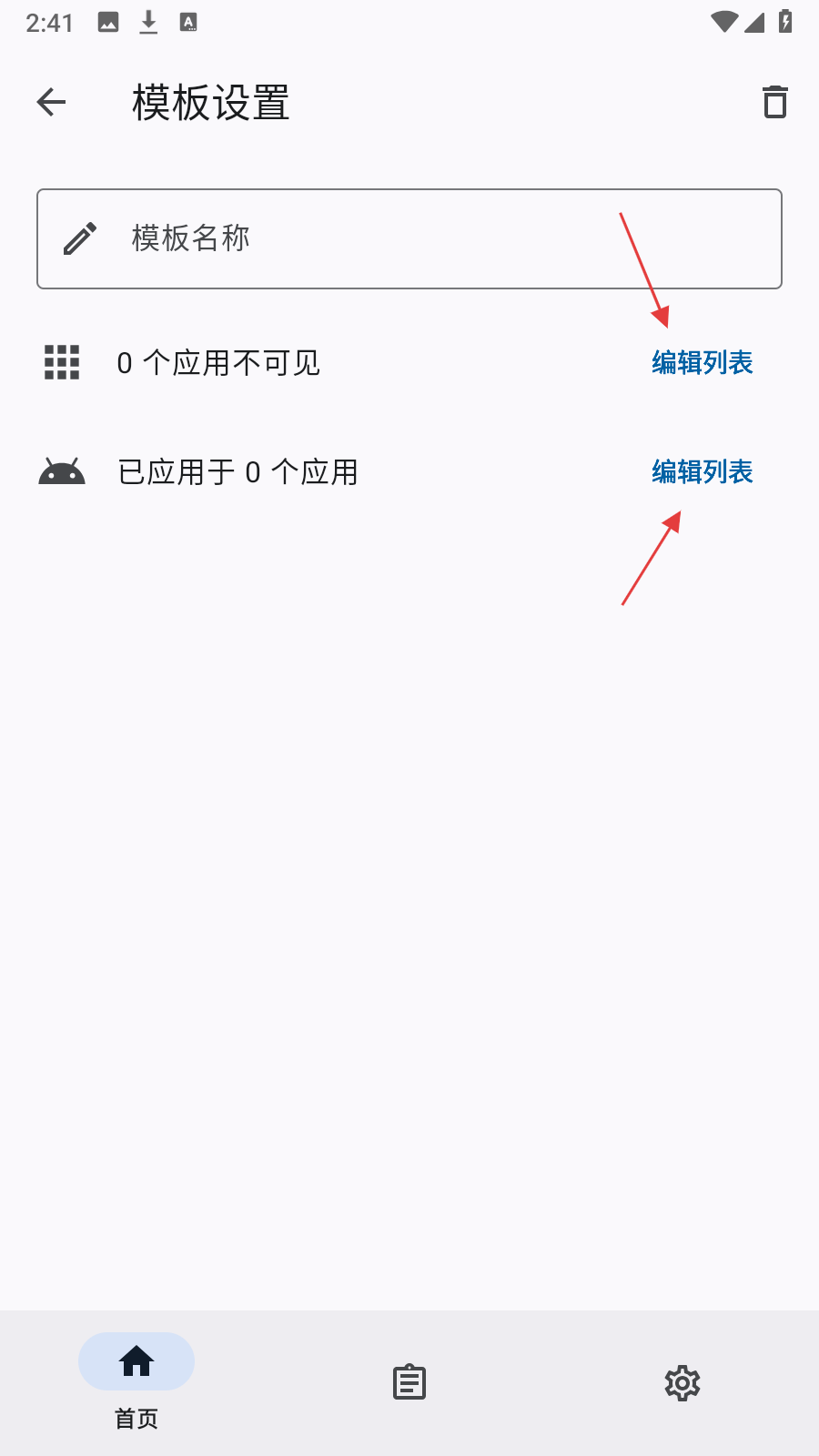 3、可在模板名稱輸入框中為黑名單模板命名,點擊右側(cè)的編輯列表,選擇需要隱藏的應用添加到黑名單。