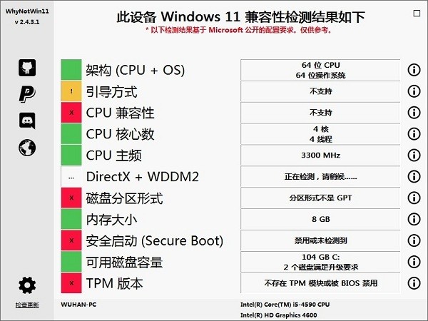 whynotwin11軟件可以檢測用戶系統(tǒng)能否升級到win11,查看準確檢驗結(jié)果,支持多種系統(tǒng)類型,顯示詳細的硬件狀態(tài),使用簡單比原版檢測工具更加方便,檢測速度超快。