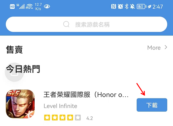 5、找到游戲之后,直接點擊右邊的下載按鈕就可以進行下載,下載完成之后會自動安裝到手機上。