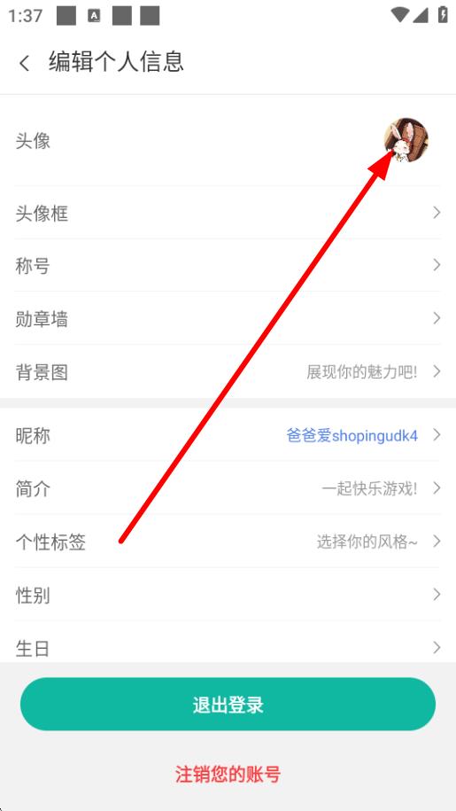 4、在編輯個人信息頁面,點擊頭像選項,按提示操作即可更換頭像。