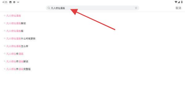 2、啟動(dòng)搜索功能:點(diǎn)擊主頁面頂部的搜索欄,輸入動(dòng)漫名稱,輸入過程中會(huì)彈出聯(lián)想推薦。
