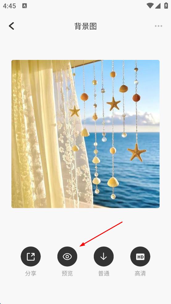 3、在背景圖詳情頁,可點(diǎn)擊下方分享、預(yù)覽等功能按鈕,按需對背景圖進(jìn)行操作,體驗(yàn)APP相關(guān)服務(wù)。