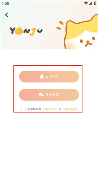 3、選擇QQ登錄或微信登錄,勾選已閱讀并同意相關(guān)協(xié)議后完成登錄。