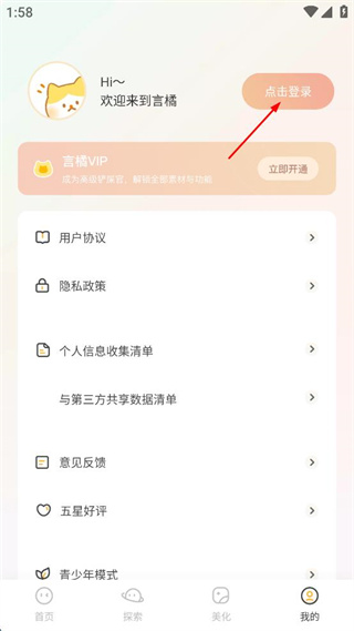 1、打開言橘APP,彈出溫馨提示彈窗,閱讀內(nèi)容后點(diǎn)擊同意,確認(rèn)接受用戶協(xié)議與隱私條款進(jìn)入首頁。