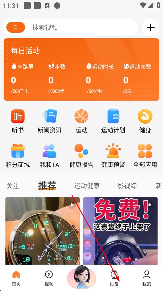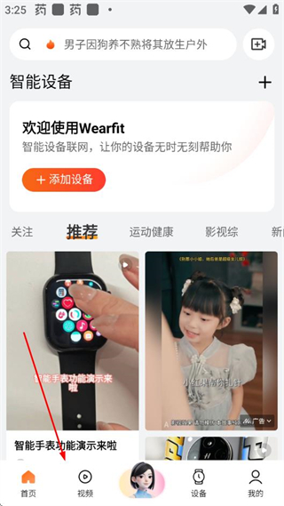 1、打開Wearfit Pro APP,點(diǎn)擊底部視頻選項(xiàng),進(jìn)入視頻頁面。