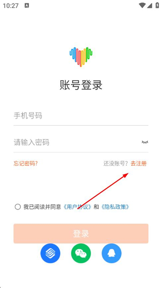 1、打開Wearfit Pro APP,在賬號(hào)登錄頁面點(diǎn)擊去注冊(cè)。