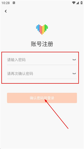 3、輸入密碼并再次確認(rèn)密碼后,點(diǎn)擊確認(rèn)密碼并登錄,即可完成賬號(hào)注冊(cè)。