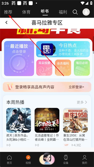 2、在視頻頁面頂部的分類欄中,選擇推薦,進(jìn)入對(duì)應(yīng)視頻列表。