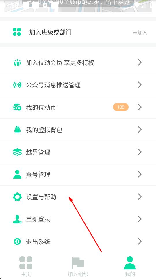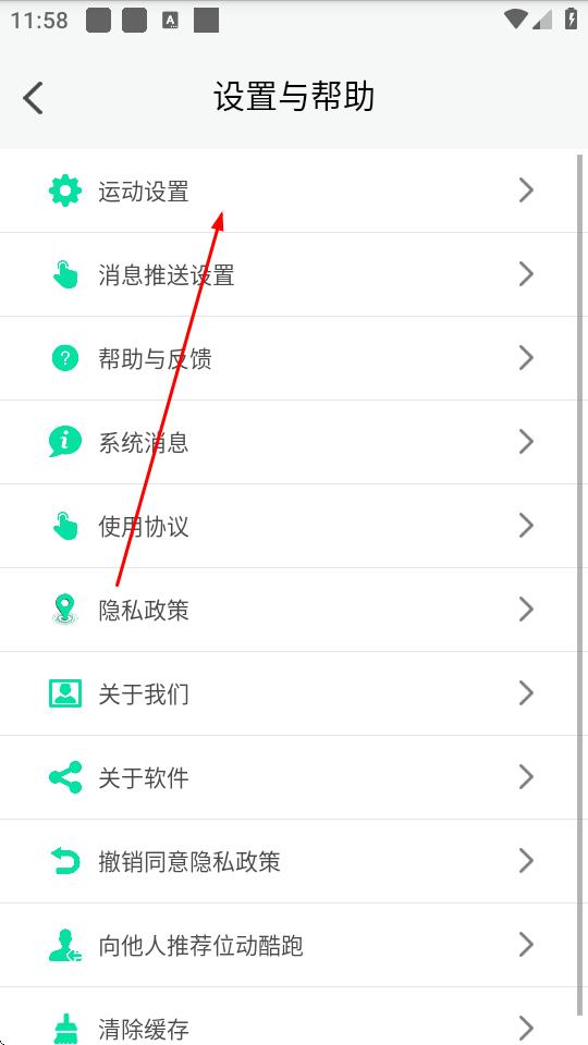 3、進入設置與幫助頁面后,點擊運動設置選項。