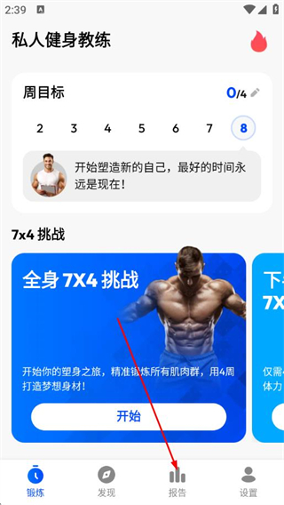 1、打開私人健身教練APP,點(diǎn)擊底部報(bào)告。
