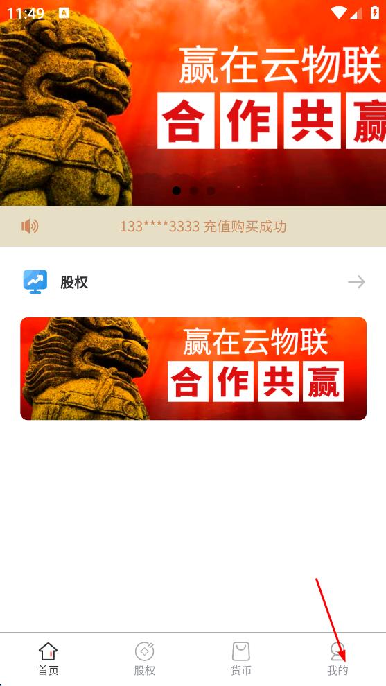 1、打開云物聯(lián)相關(guān)軟件,進入首頁后,點擊右下角“我的”按鈕,進入個人中心頁面。