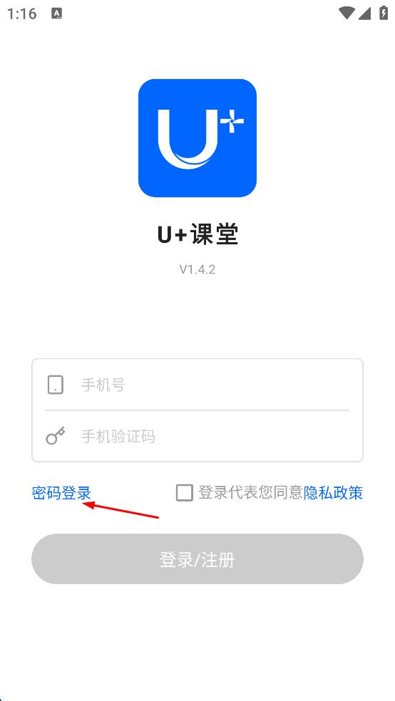 4、勾選登錄代表您同意隱私政策的選項(xiàng),點(diǎn)擊登錄按鈕,完成U+課堂的密碼登錄。